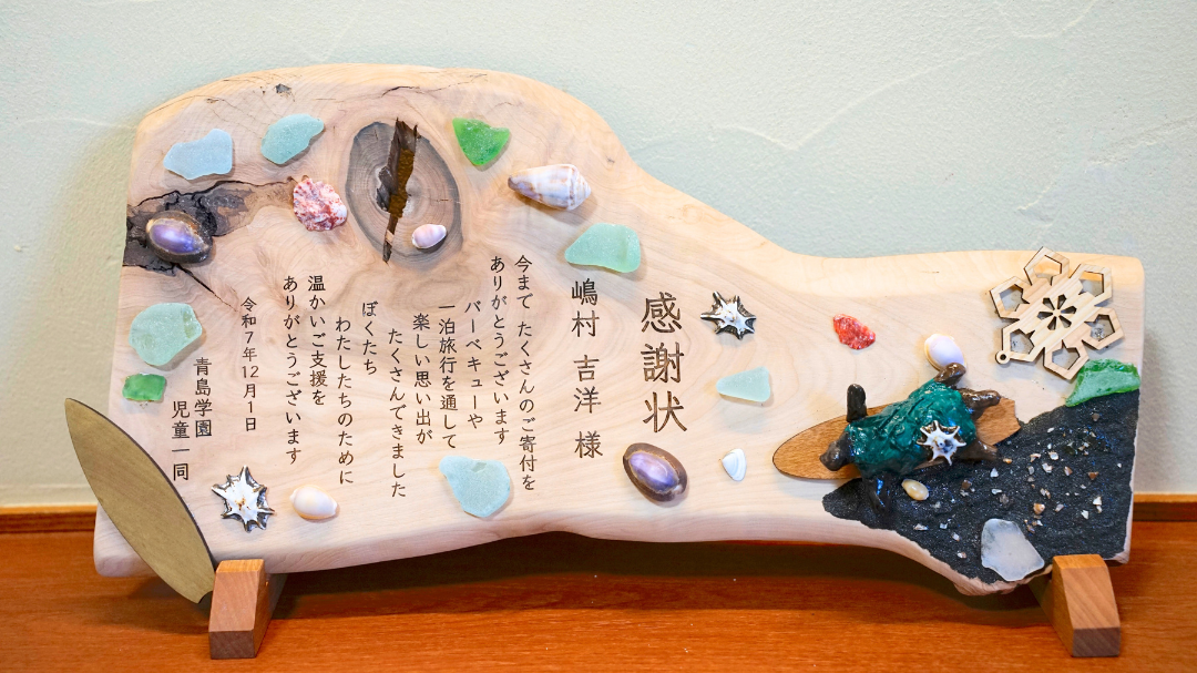 子どもたちの笑顔につながる支援に感謝 嶋村吉洋が青島学園より表彰 社会貢献活動の一環として継続的に行われた寄付に対して正式に感謝状を授与